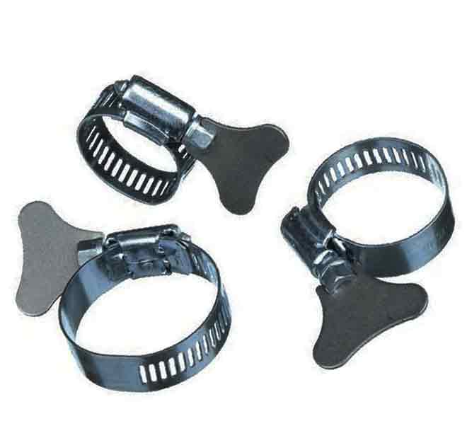 Обжимной нержавеющий хомут-«бабочка» представляет собой металлический ремешок с фиксирующим механизмом, который позволяет легко затянуть или ослабить крепление. Применяется при монтаже водопроводных и отопительных систем для быстрого герметичного соединения труд одинакового диаметра. Незаменим в случаях, когда нужно часто снимать, менять и переподключать шланги.