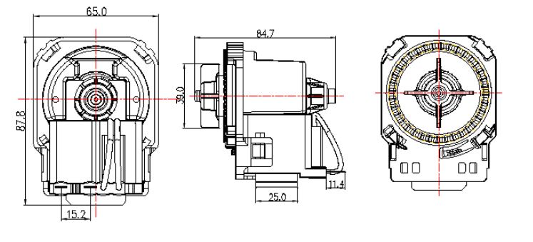 Насос сливной (помпа) P25-1EKF универсал.: 40W, крепл. — 4 защелки, выводы — сзади раздельно