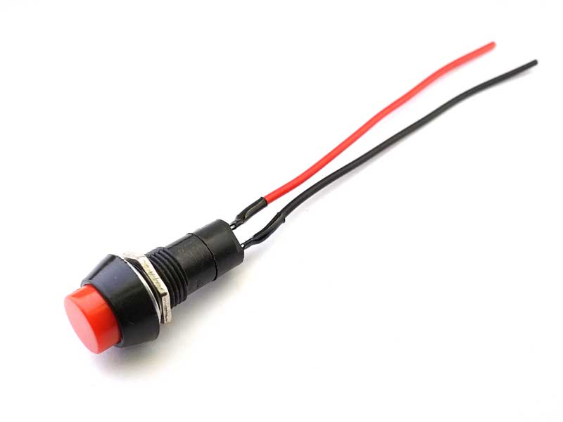 Выключатель-кнопка 250V 1А (2с) OFF-(ON) Б/Фикс (на замыкание красная (PBS-11B) предназначена для коммутации электрических цепей переменного тока напряжением до 250В, путем включения-выключения питающего провода. Кнопки применяются в качестве комплектующих изделий различного электрооборудования (в аудио системах, блоках питания, электроустановках на различных производствах, автомобилях, и многих других местах). Разнообразные цветовые варианты исполнения позволяют эффективно комплектовать панели управления. Изделие состоит из двух основных частей - лицевой части (головки) и контактной, и имеет пружинный возвратный механизм. Монтаж осуществляется без применения винтов на плоских панелях толщиной от 0.5мм до 3мм, с помощью гайки. Подключение контактов осуществляется с помощью пайки.