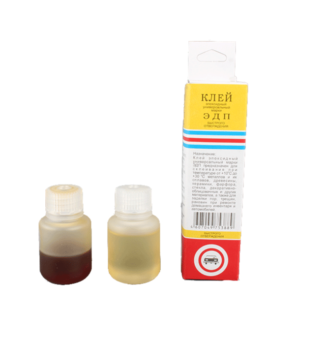 Эпоксидный клей ЭДП (ТУ 2385-024-75678843-2010) предназначен для склеивания при температуре от +10 0С до +30 0С металлов и их сплавов, древесины, керамики, фарфора, стекла, декоративно-облицовочных и других материалов, а также для заделки пор, трещин, раковин при ремонте домашнего инвентаря и автомобиля.
