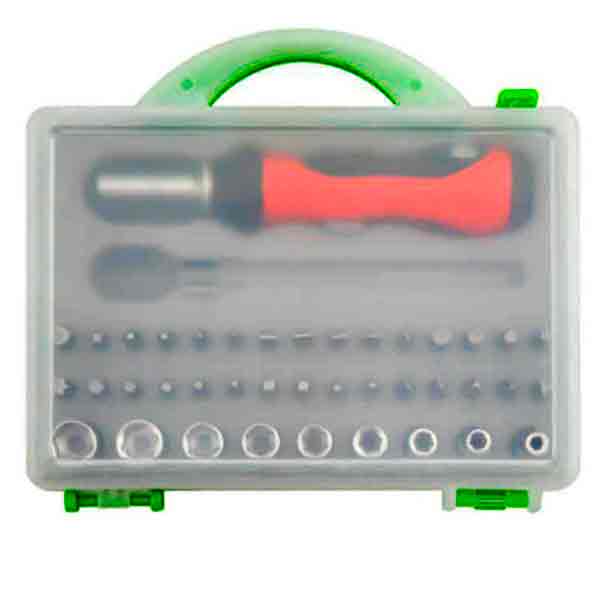 Набор бит и торцевых головок с рукояткой, Master Hand, состоит из 41 предмета. Включает в себя переходник, адаптер и 29 бит. В комплект также входят торцевые головки размером: 4 мм, 5 мм, 6 мм, 7 мм, 8 мм, 9 мм, 10 мм, 11 мм, 12 мм. Состав: полипропилен, ПВХ, углеродистая сталь. Ручка-держатель с двумя положениями рукоятки позволяет открутить даже плотно зафиксированный крепёж. Набор бит и торцевых головок, Master Hand, пригодится для быта и хобби.