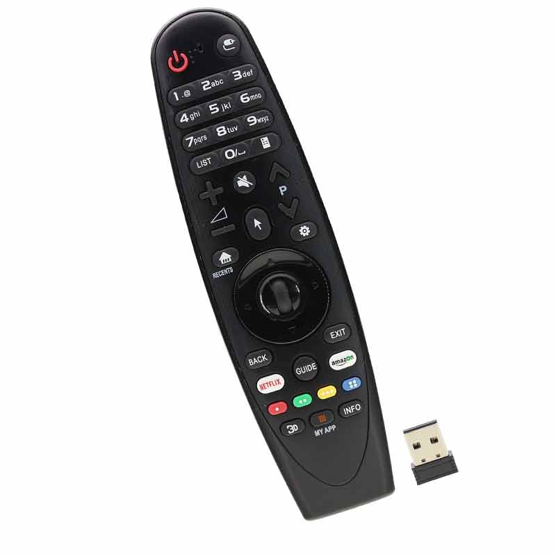 Пульт заменяет все пульты Magic Motion от LG Smart TV, подключается с помощью микроприемника и не требует настройки. Пульт управляет курсором как аэромышь, но не имеет голосового управления.