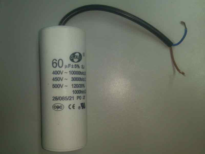 Конденсатор пусковой 60 мкФ 450 В CBB60 (Senju) гибкие выводы