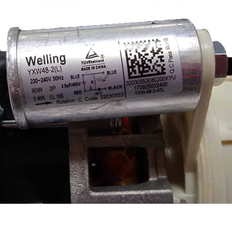 Надписи на детали: YXW48-2(L) 220-240V 50Hz 90W 2P 2.5µF/450V 0.40A CL155. Code: 32030553, 32030553080200KYU 170925002400 YXW-48-2-47L
