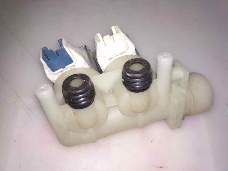 Электроклапан двойной 90° выпуск=14мм фишки: EDL 90/88-M, Indesit, Atlant, демонтаж