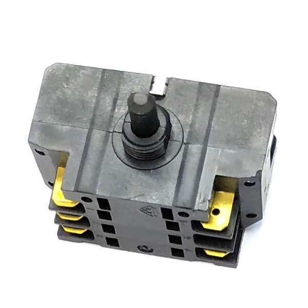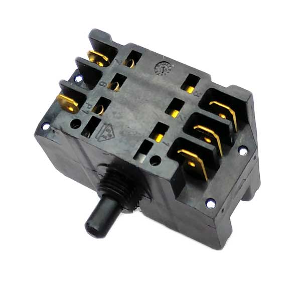 Для чугунной конфорки (ЭКЧ). 7 позиций переключения - 6 рабочих позиций и 1 нулевая. Имеет по 5 клемм сверху и снизу. Максимальная сила тока: 12A/250V и 8A/400V. Производитель - EGO (Италия).