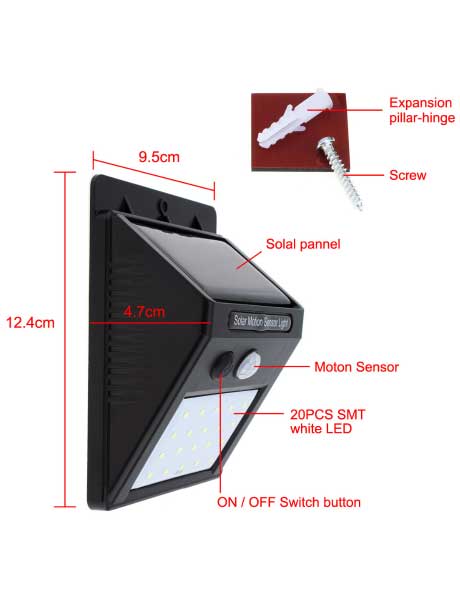 Свет горит постоянно ночью. Когда срабатывает датчик он загорается ярче. Через некоторое время затухает в тусклый свет. Когда светает автоматически выключается.Светильники оснащены литиево-ионной батареей. Водонепроницаемый корпус.Установка очень проста и удобна, просто прикрутите его. Размер 9,6*12,4*4,8 см. 6 светодиодов. В ночное время 10 люмен.