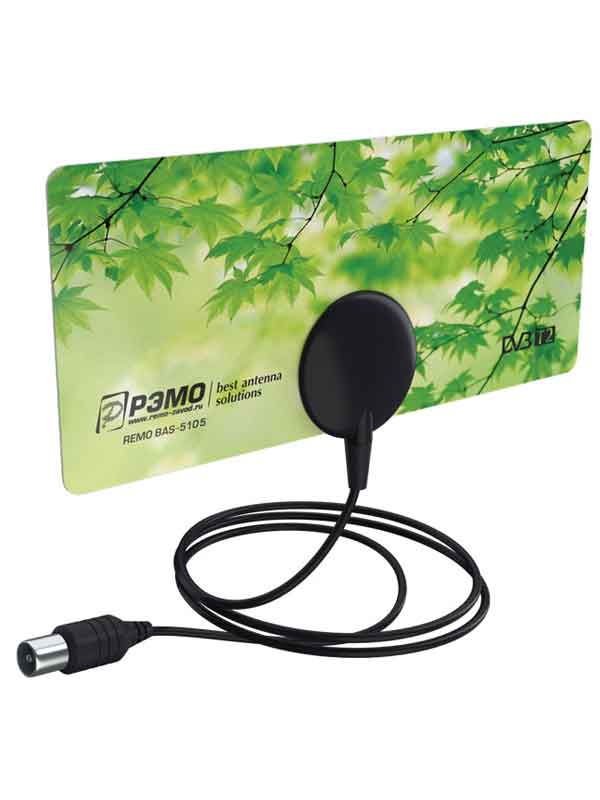 Антенна «BAS-5105-5V» предназначена для приема телевизионных программ в полосе частот 174...862 МГц (каналы с 6 по 69 МВ и ДМВ). Антенна принимает сигналы аналогового и цифрового телевидения формата DVB-T/DVB-T2. Антенна может установлена на телевизоры с креплением FDMI VESA, либо на корпус цифрового приемника (ресивера) или любую гладкую поверхность.